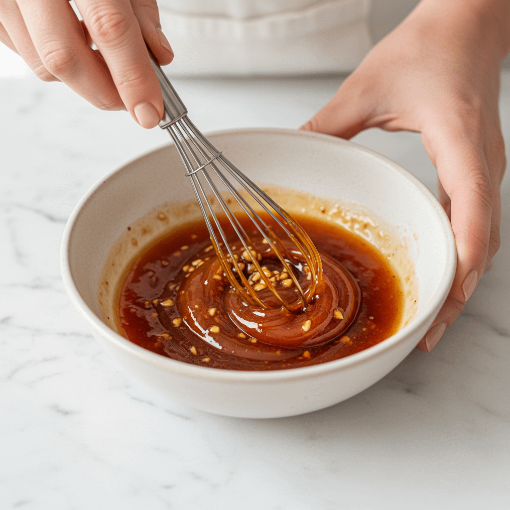 • Make the Glaze: In a small bowl, whisk together the [5-Minute Homemade Hot Honey], minced garlic, soy sauce, and lemon juice. Set aside.