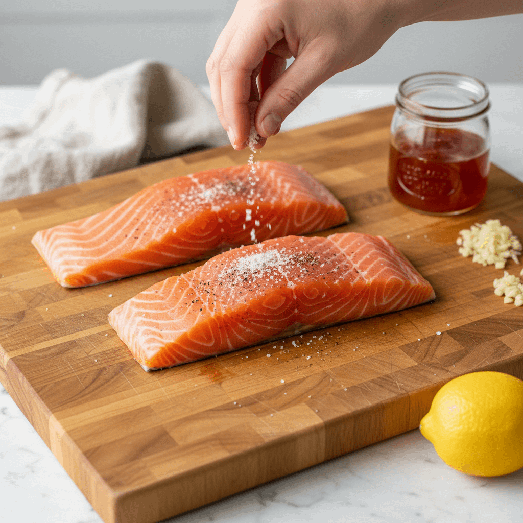 • Prep Salmon: Pat the salmon fillets completely dry with a paper towel. This is the secret to a crispy sear. Season generously with salt and pepper.