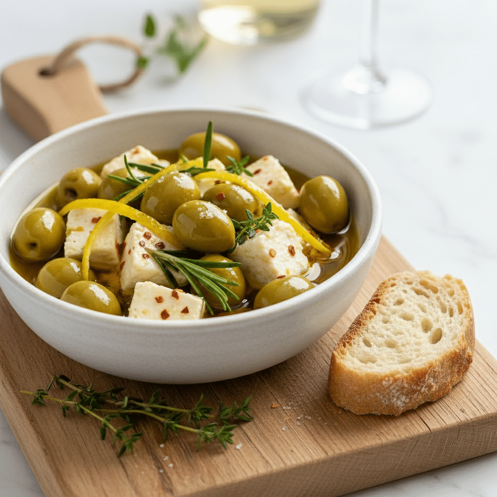 5-Minute Marinated Olives and Feta