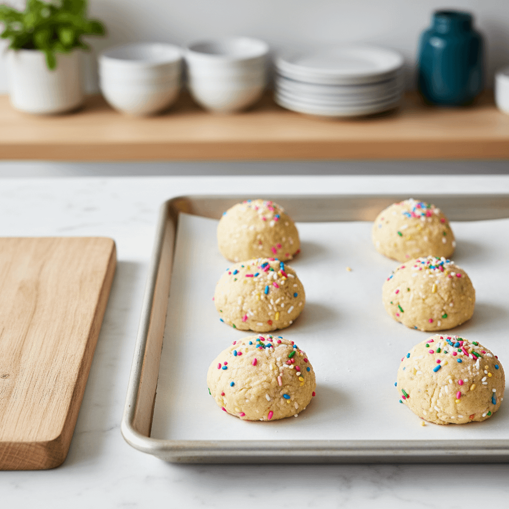Finally, scoop the dough into little balls. This ensures all your cookies are the same size and bake up perfectly even.