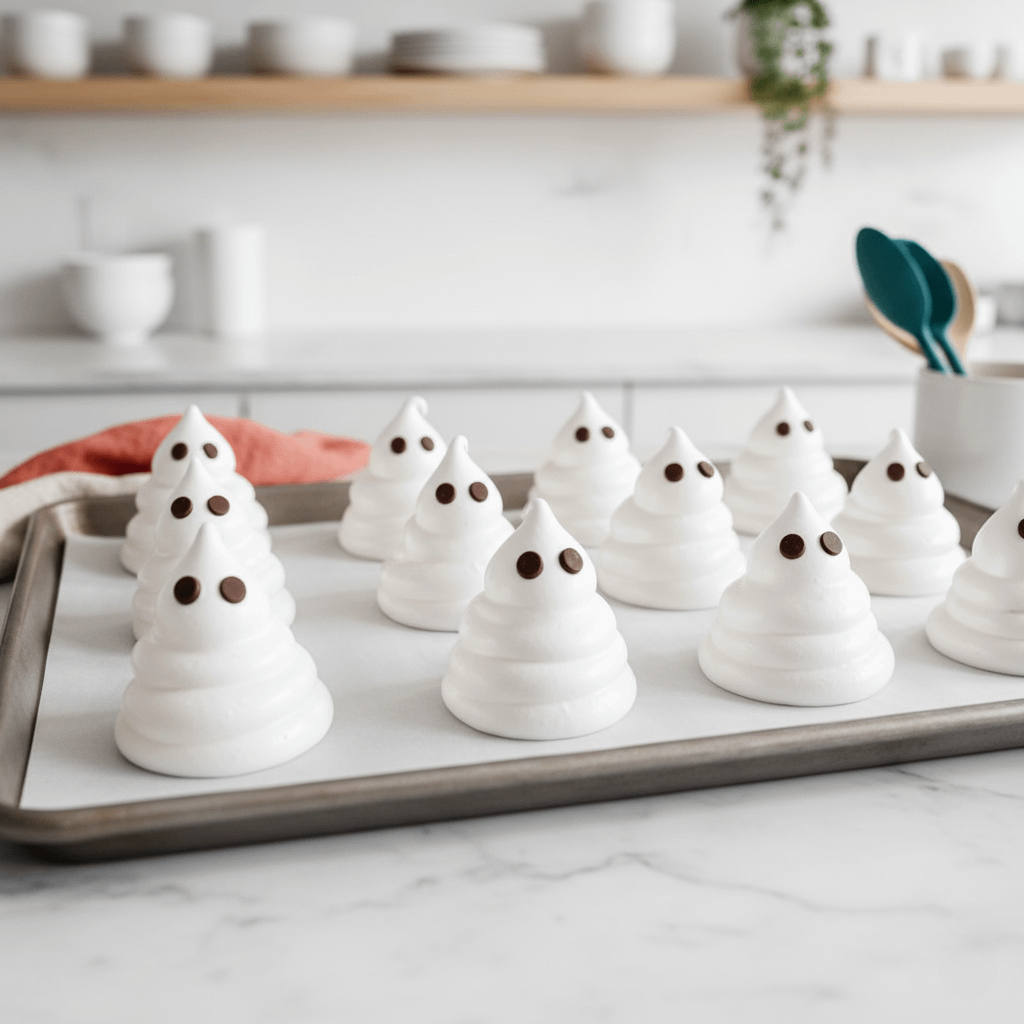• Low and Slow: The key to perfect meringues is baking them at a low temperature for a long time. This dries them out without browning them, keeping your ghosts a brilliant white.