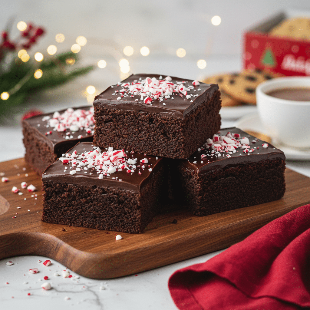 • Top & Sprinkle: Pour the peppermint ganache over the cooled brownies and spread in an even layer. Immediately sprinkle with the crushed candy canes.