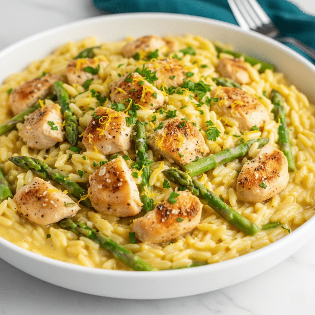 Get ready to meet the one-pot wonder that is going to revolutionize your weeknight dinner game. This Creamy Lemon Orzo with Chicken and Asparagus looks and tastes like something you’d get at a fancy restaurant, but it comes together in one pot in about 30 minutes. It’s a total showstopper.