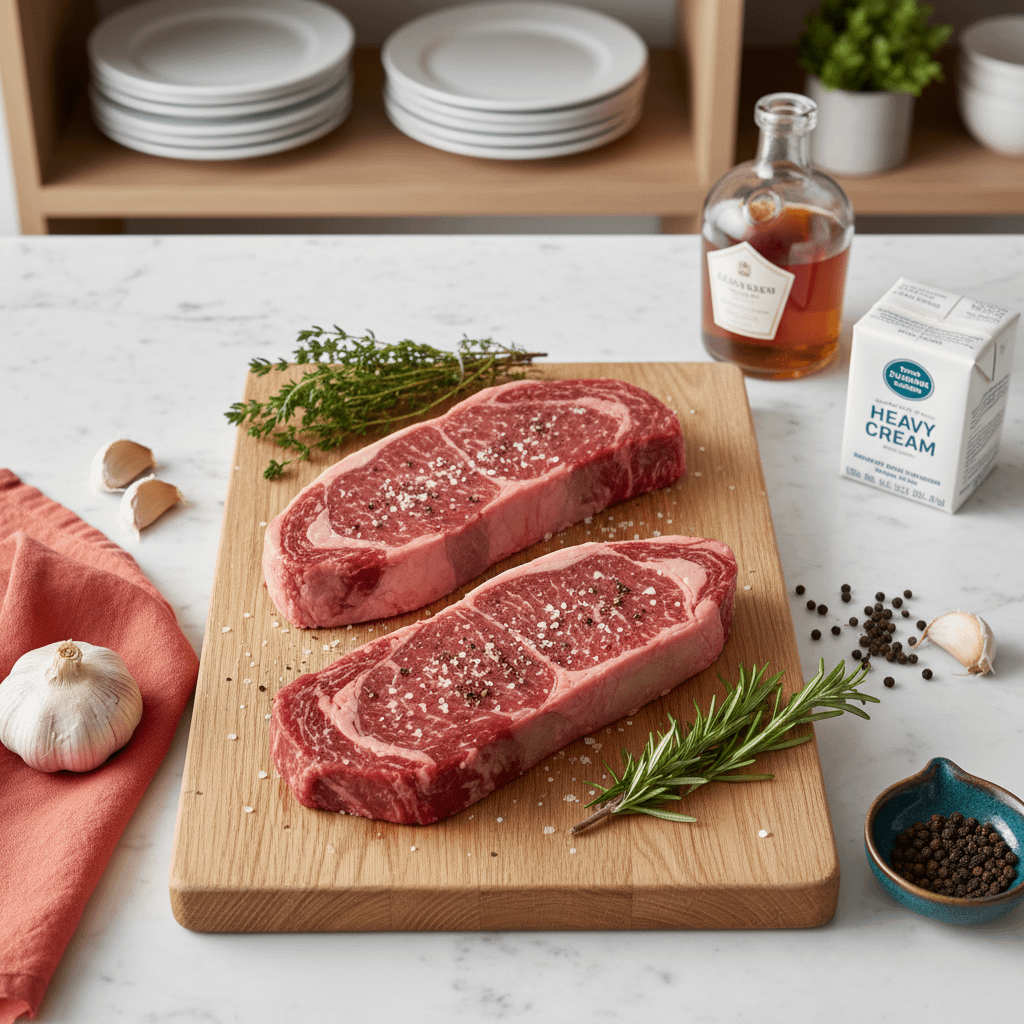 Pan-Seared Steak with Peppercorn Cream Sauce