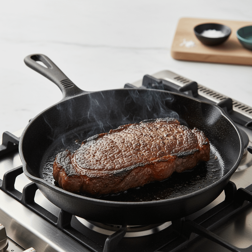 Next, the most important step: the sear! The key to a great steak is starting with a very dry surface and a very hot pan. We’ll sear it, undisturbed, until a deep, dark brown crust forms.