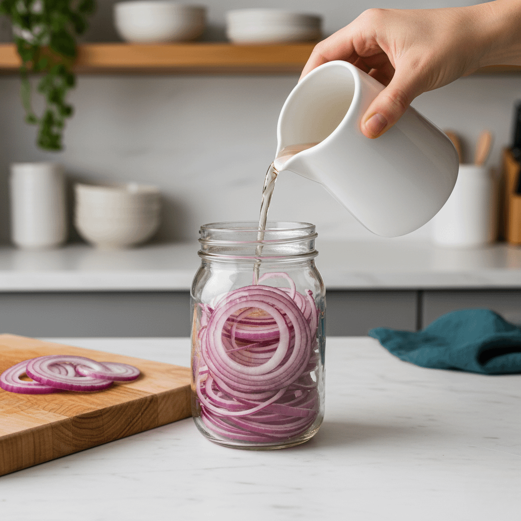 Finally, pour the hot brine over the onions. This is where the magic happens—you can watch them start to turn that gorgeous pink color right before your eyes! Let them sit for about 30 minutes, and you’re ready to go.