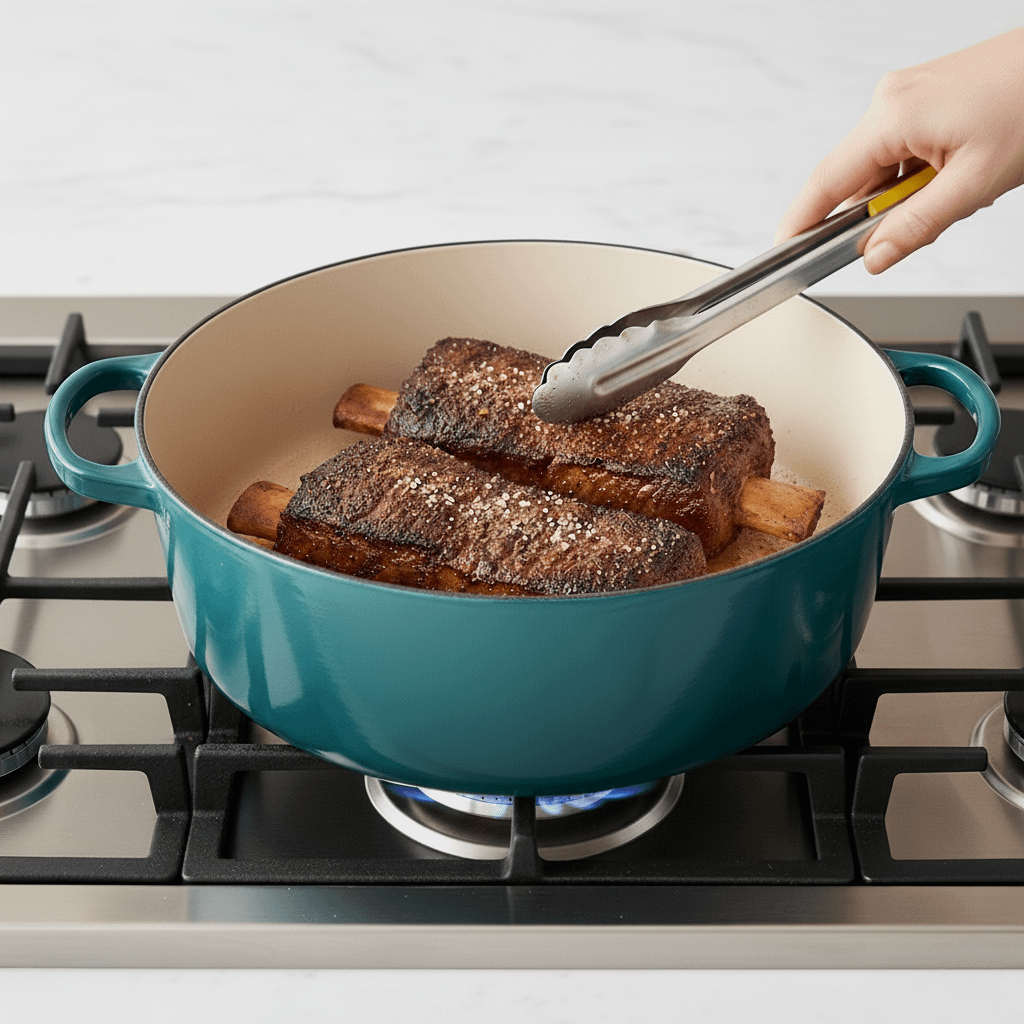 Next, the most important step for flavor: the sear. We’ll get a deep, dark brown crust on all sides of our short ribs. This step, called the Maillard reaction, is what creates the foundational flavor for our entire dish. Don’t rush it!