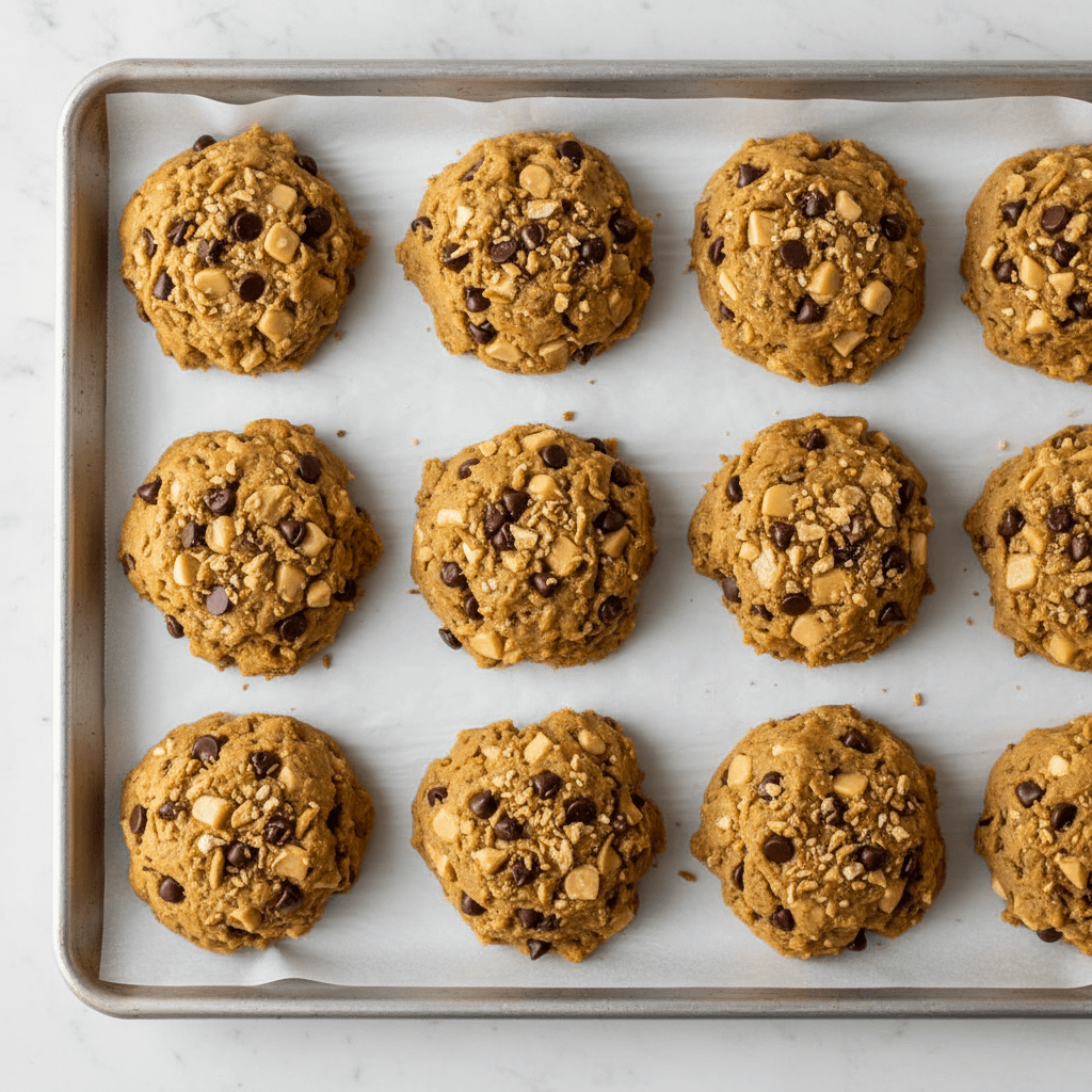 • Scoop: Drop generous ¼ cup mounds of dough onto the prepared baking sheets, leaving a few inches of space between each cookie for spreading.