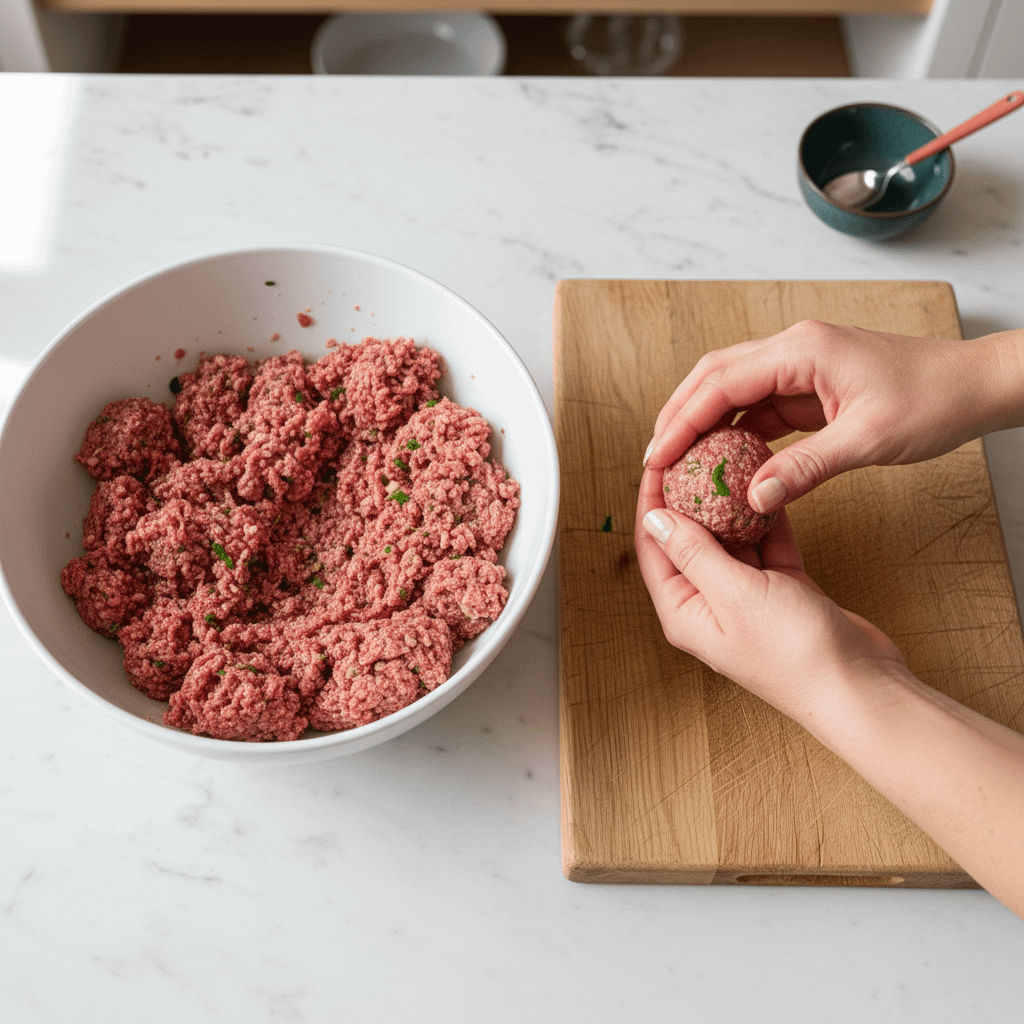Next, the fun part: rolling the meatballs. This is our hands-on “smash” moment. We’ll gently mix our meatball ingredients and roll them into uniform balls.
