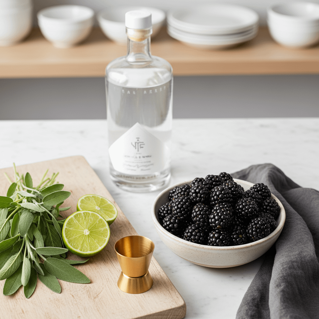 Let’s mix up something amazing. Here’s how to do it.First, gather your beautiful, simple ingredients. Fresh blackberries and fragrant sage are the stars of the show here.